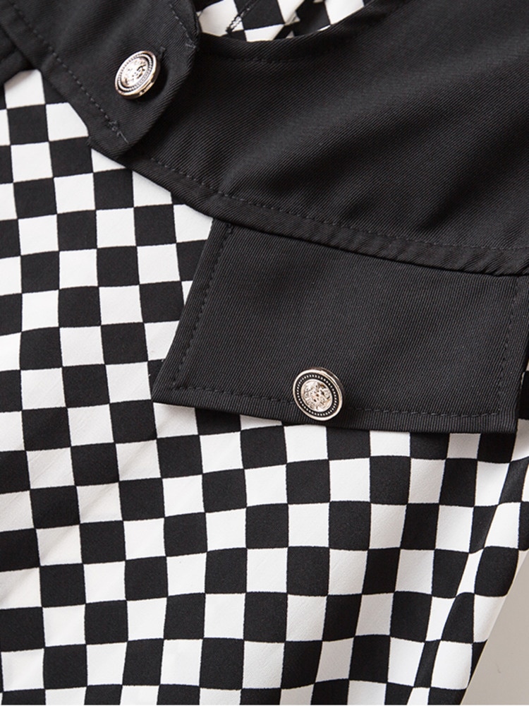 Summer Elegant Women Short Sleeve Dresses Office Ladies Plaid Patchwork Fake Two Pieces Dresses For Women Vestidos